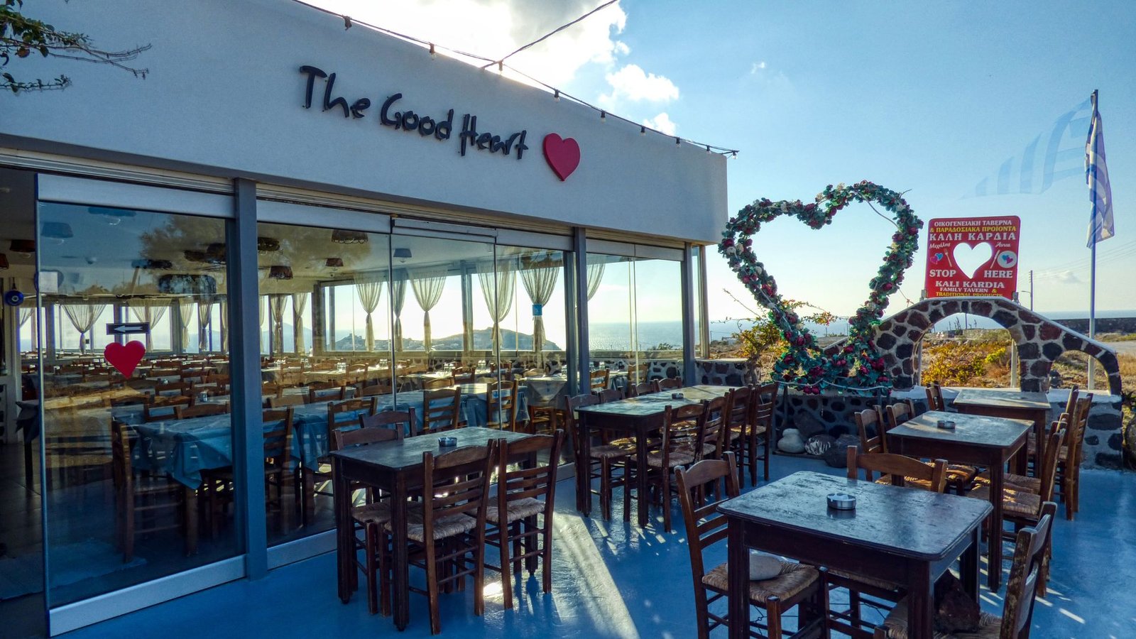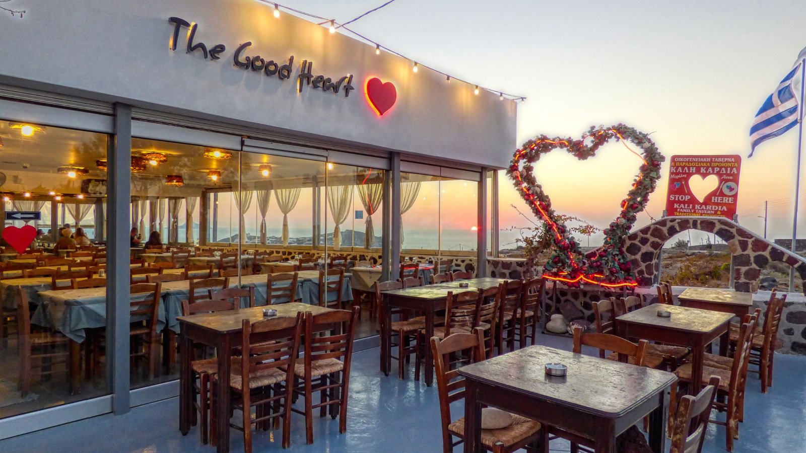 The Good Heart is a beloved restaurant in Akrotiri Santorini, known for its best authentic Greek food and genuinely welcoming atmosphere.
