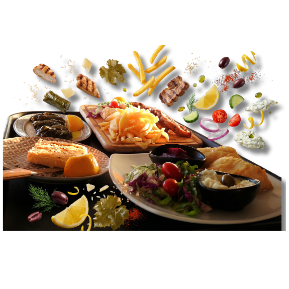 Choose from our Menu Classic dishes Cooked with a lot of Passion such as Chicken Gyros Portion, Pork Souvlaki, Authentic Greek Moussaka, Soutzoukakia with saffron rice (meatballs in tomato sauce)…