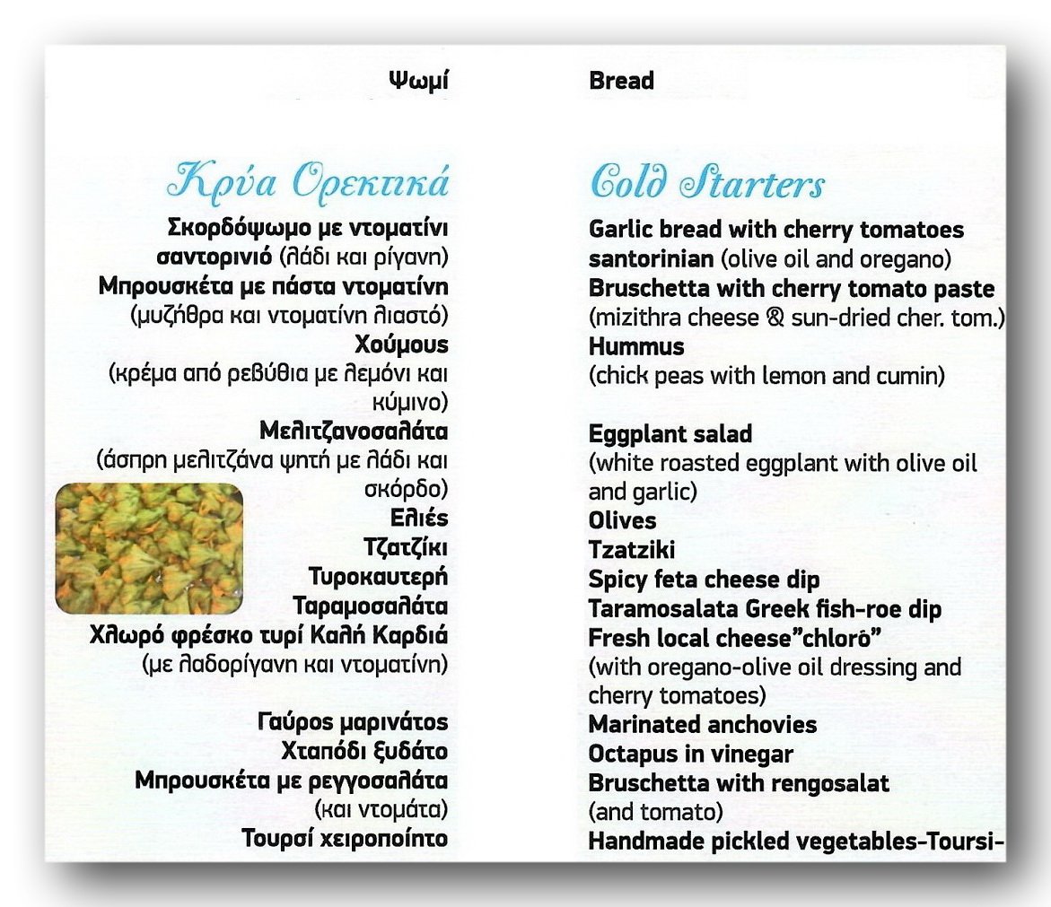 We Have Created a Menu That Reflects the Unique Character of the Island of Santorini..