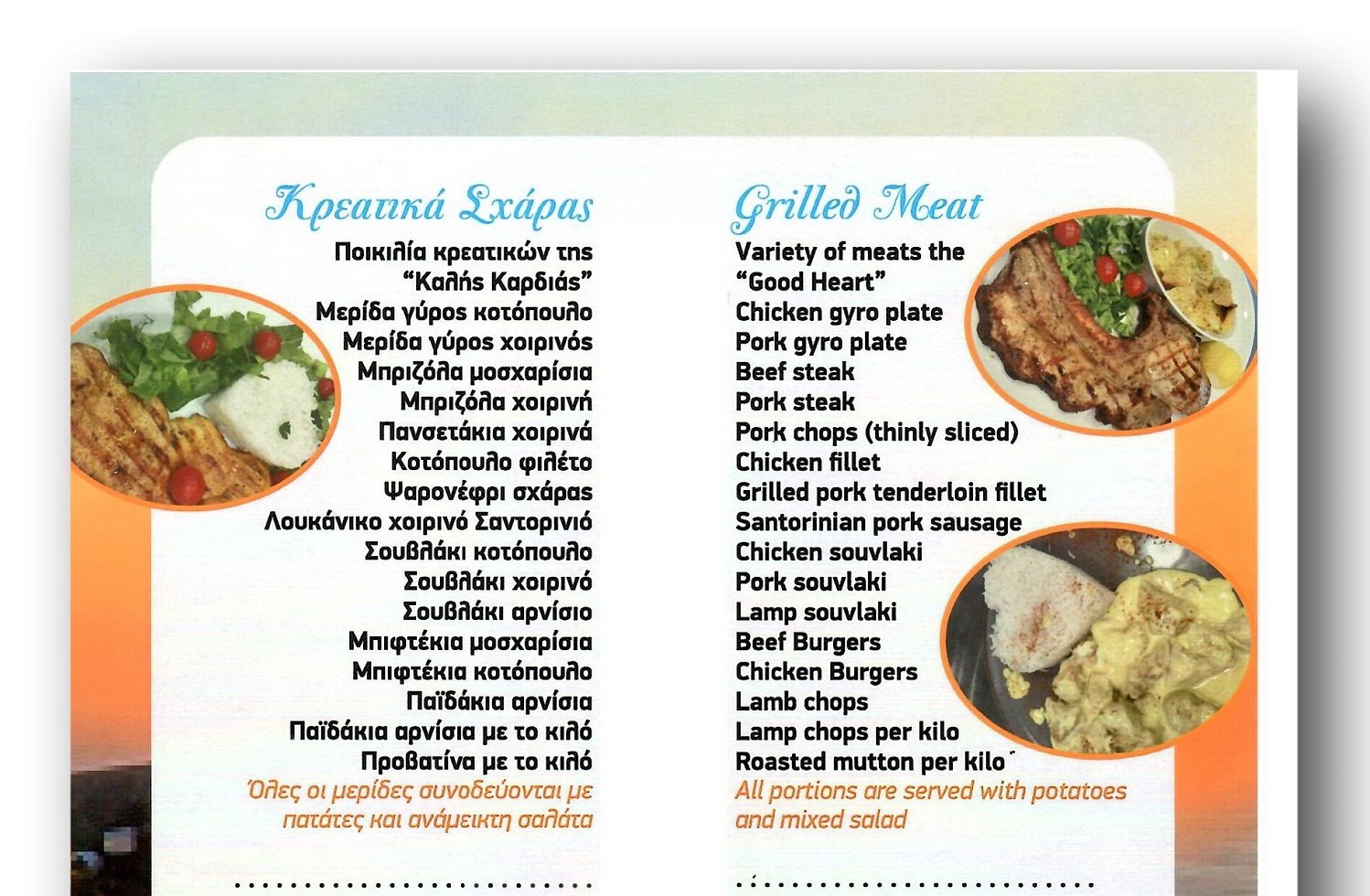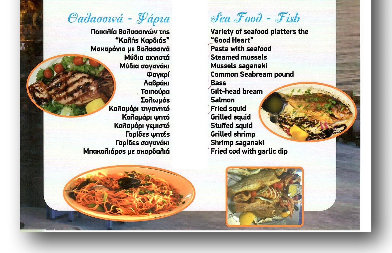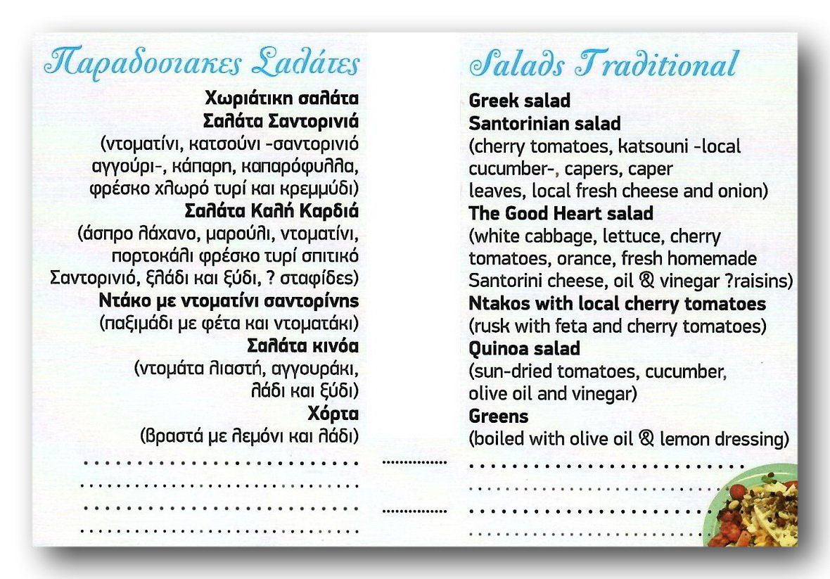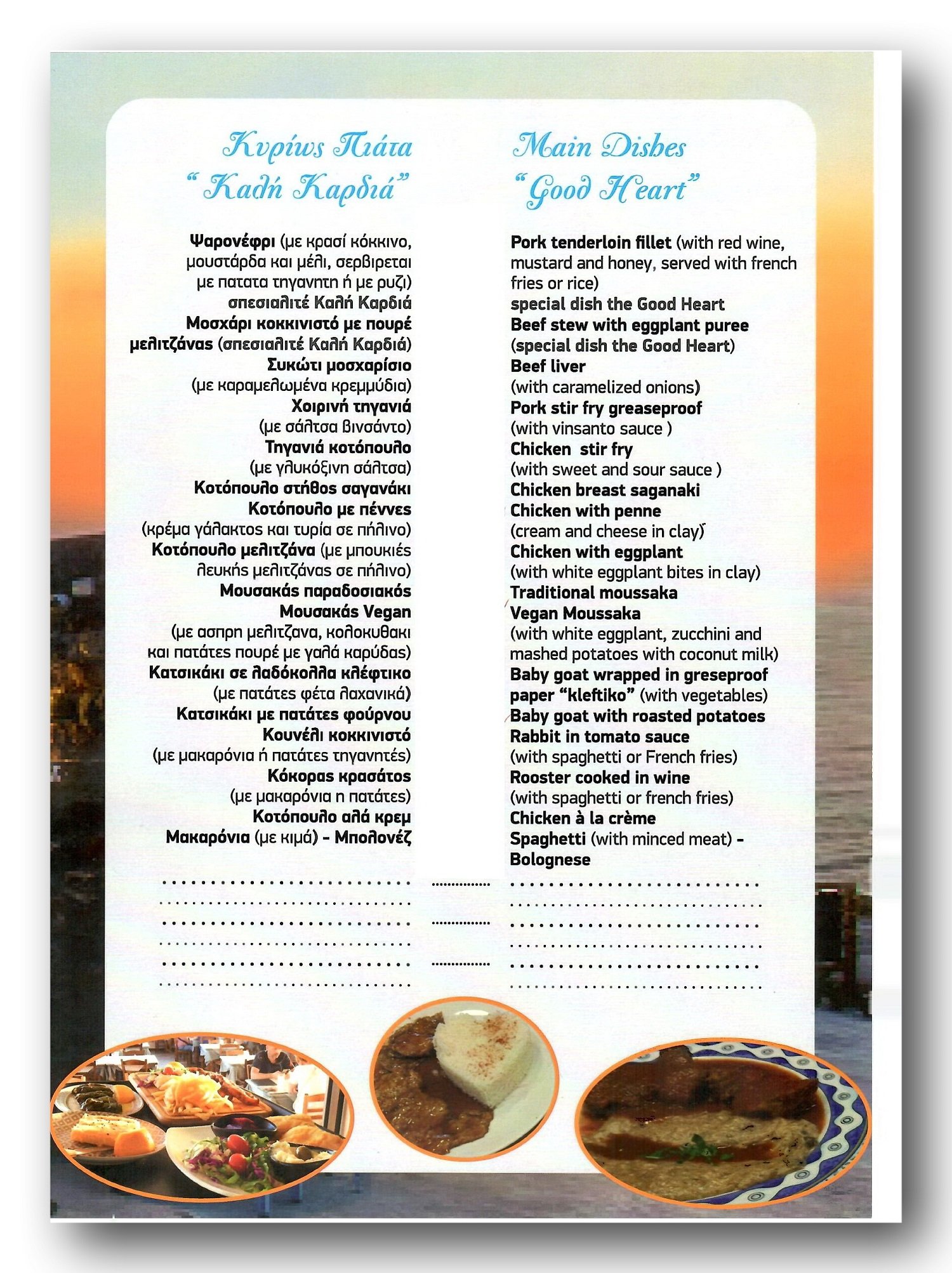 The Menu of the Restaurant "The Good Heart"
